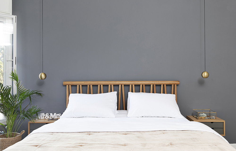 מיטה מוטות מעץ אלון בעיצוב ייחודי. במבחר מידות לבחירה. ניתן לשלב ארגז מצעים למיטה זוגית.