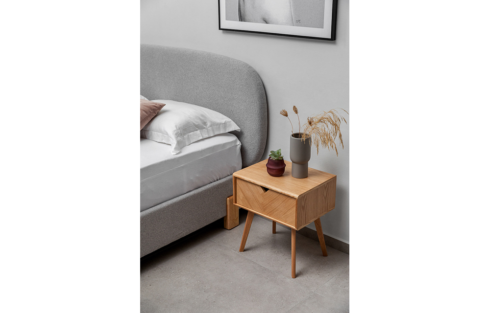 מיטת יחיד עם ראש מיטה מחורץ בשילוב שידת לילה מתצוגת רדיזיין (קרית אתא)