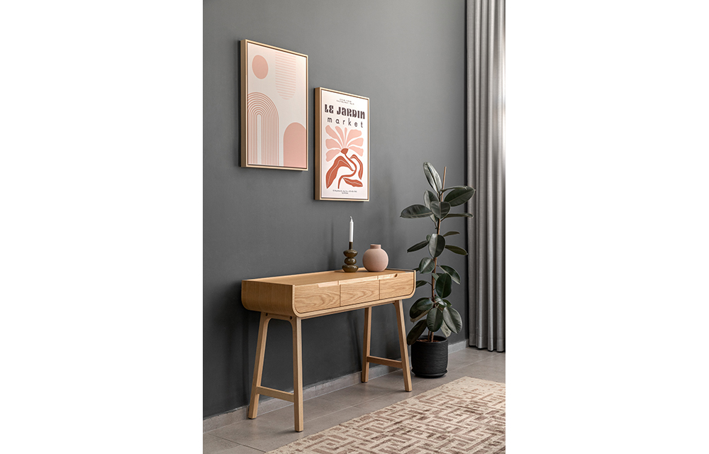 שידת טואלט הכוללת 3 מגירות. בגוון אלון. מתצוגת רדיזיין (קרית אתא)