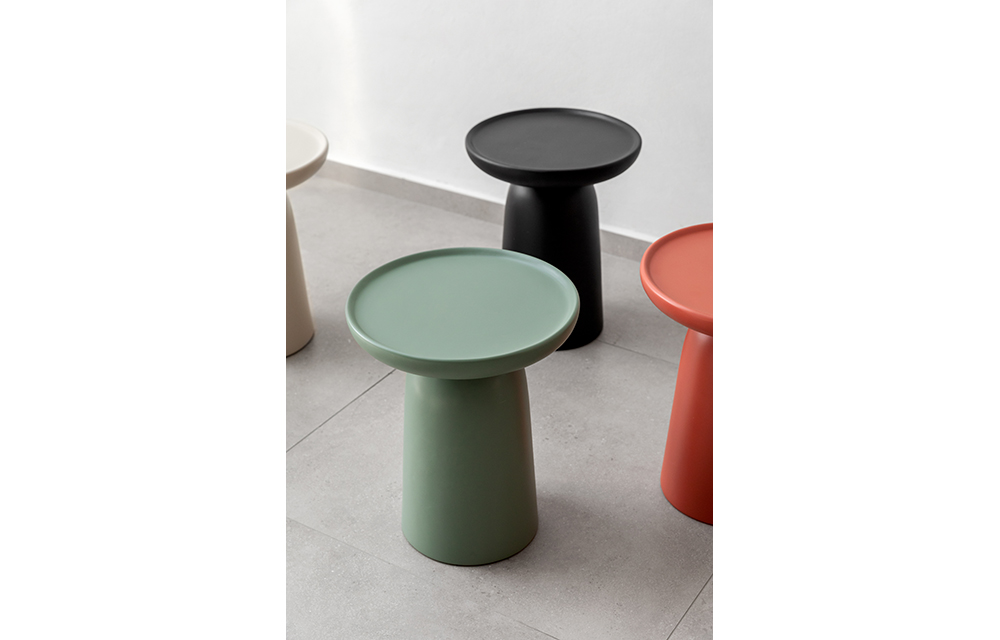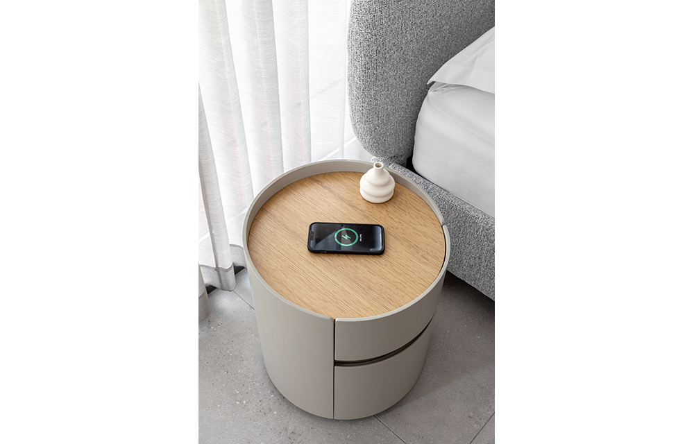 שולחן צד בגוון אלון טבעי בעיצוב מעוגל קוטר 45/ גובה 50. מתצוגת כ"ס