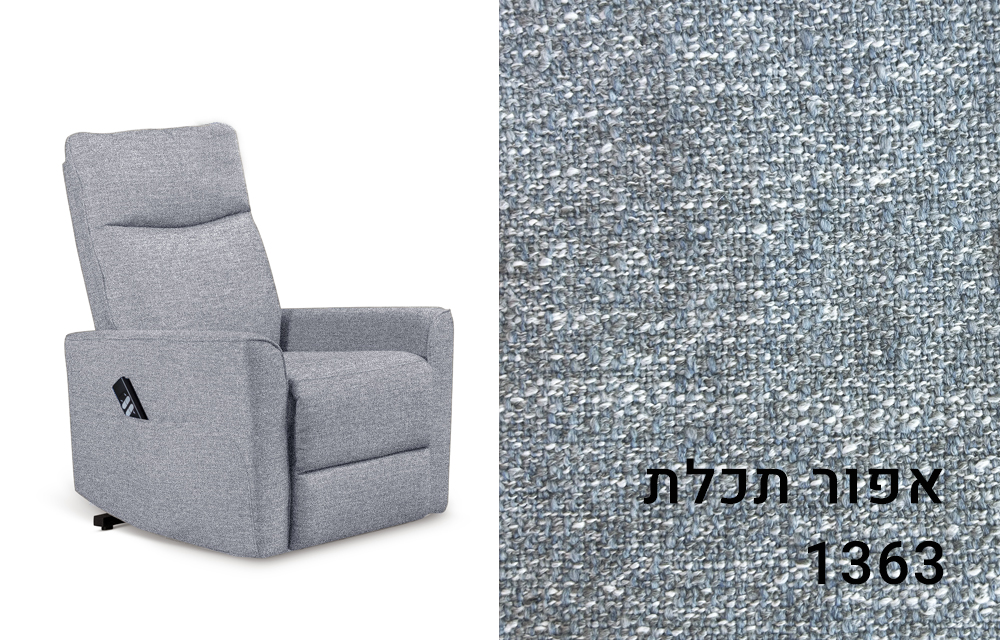 כורסת טלוויזיה חשמלית המגיעה למצב קימה וניתנת לכיוונון למספר מצבי ישיבה ושכיבה בגוון אפור תכלכל מתצוגת כ"ס