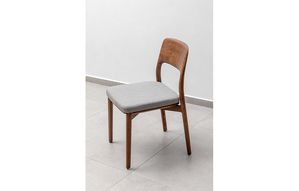 כורסת עץ מלא, בשילוב כריות בבד סינטטי בגוון אפור כהה, מתצוגת כ"ס