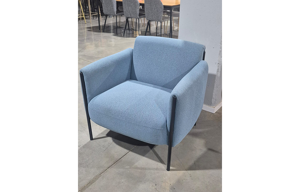 כורסא בגוון כחול בשילוב רגל מתכת שחורה. מתצוגת כ"ס