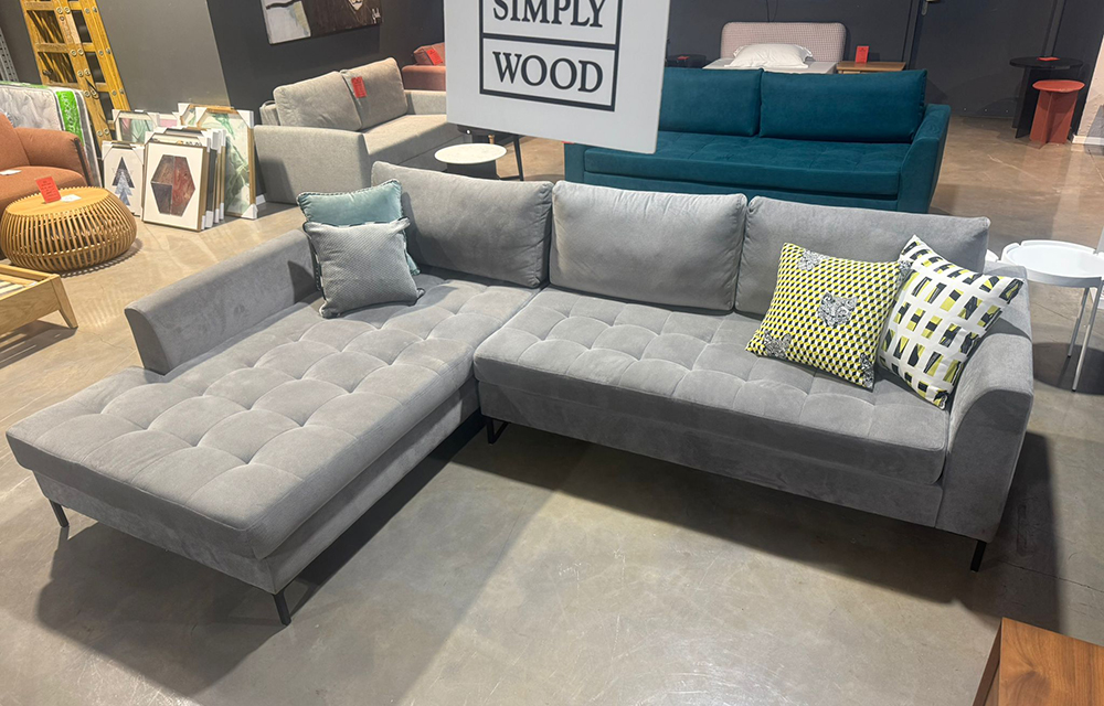 ספה 322/241 פינה ימין או שמאל בגוון אפור בהיר עם פגמים קלים מעודפים. פרטים נוספים בחנות העודפים בכ"ס