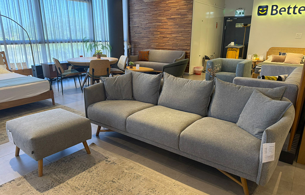 ספה ברוחב 193 ס"מ בגוון אפור, מתצוגת דיזיין סנטר (בני ברק)
