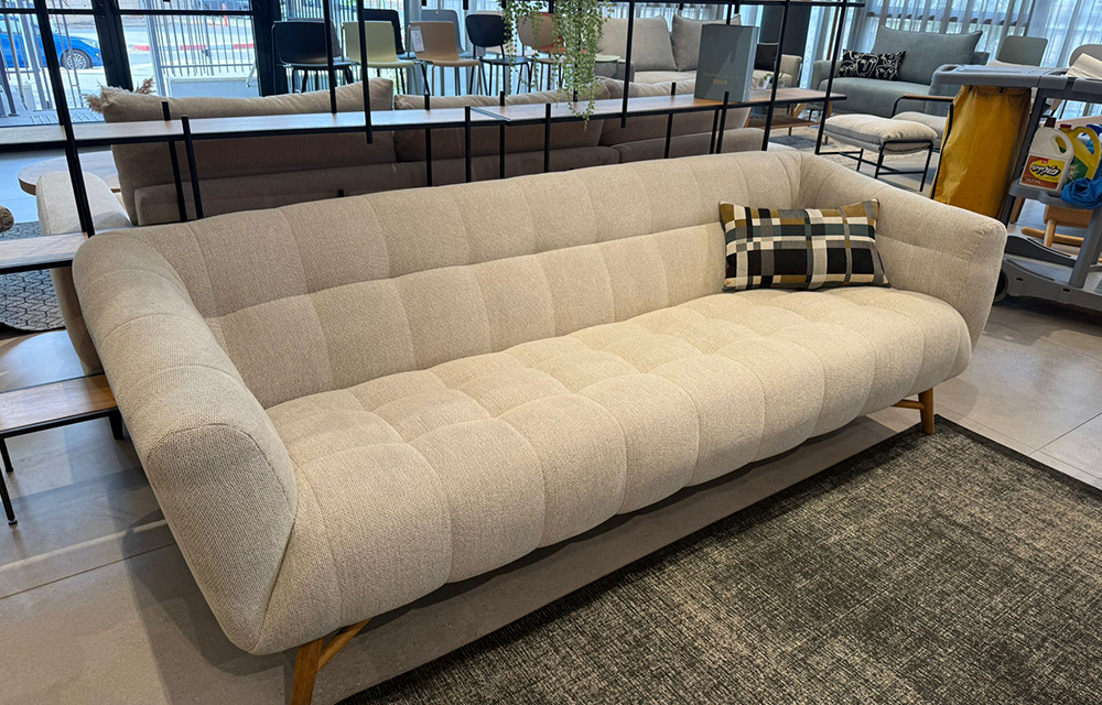 ספה נוחה להפליא בגודל 230 ס"מ בגוון בז'. מתצוגת נתניה (SOHO) וכ"ס