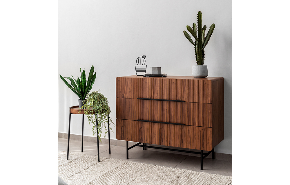 שידת טואלט בעיצוב מודרני מעוגל הכוללת 3 מגירות. בשילוב רגלי מתכת שחורות. במבחר גוונים לבחירה