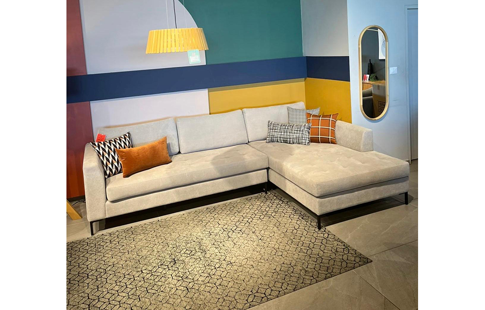 ספה 322/241 פינה ימין או שמאל בגוון אפור בהיר עם פגמים קלים מעודפים. פרטים נוספים בחנות העודפים בכ"ס