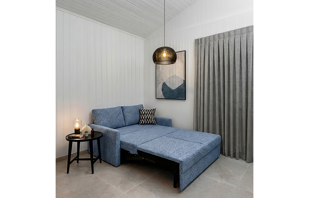 ספה דו מושב הנפתחת למיטה זוגית בגוון כחול. מתצוגות הסניפים