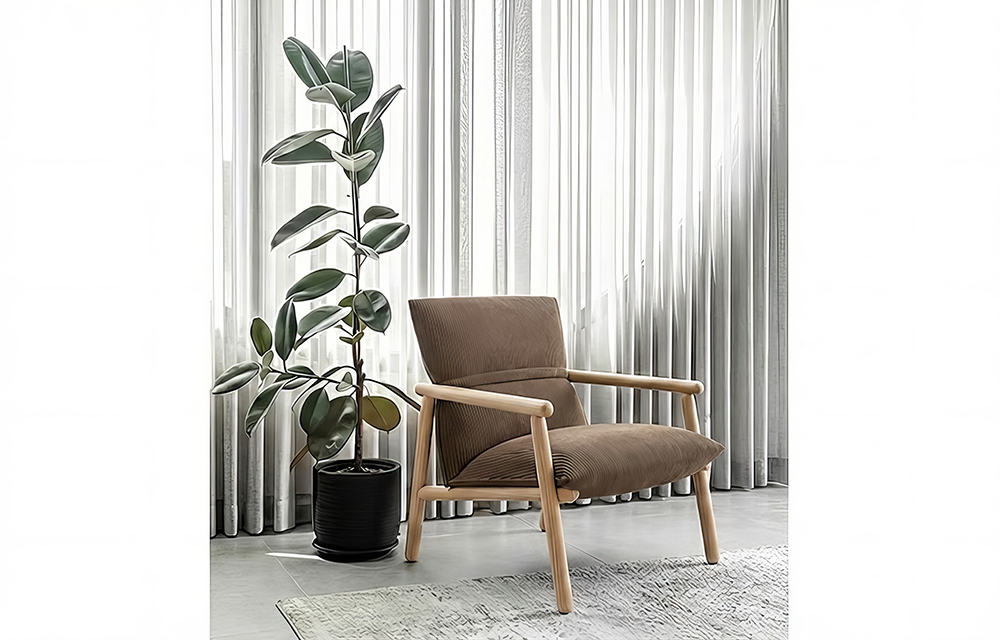 כורסא בגוון אלון טבעי בשילוב כריות קורדוריי חום מתצוגת כ"ס