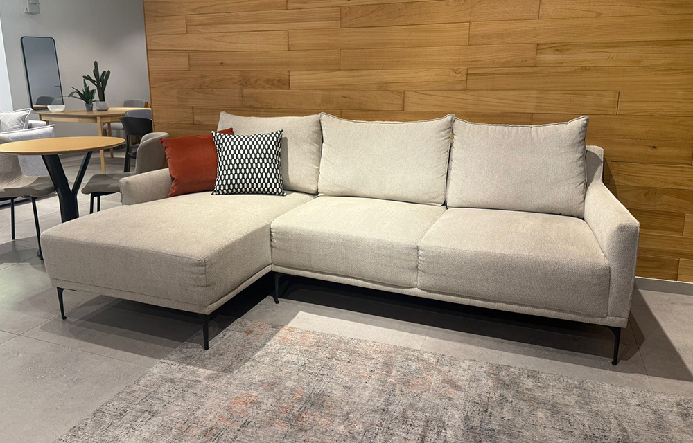 ספה תלת מושב בגודל 230 ס"מ בגוון בז', מתצוגת כ"ס