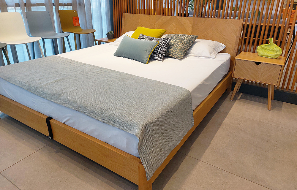 מיטה מעץ אלון מלא בשילוב פורניר אלון, עם ראש ייחודי בטקסטורות שברון פראיות. ב -3- מידות לבחירה *פריטים אחרונים מעודפים*