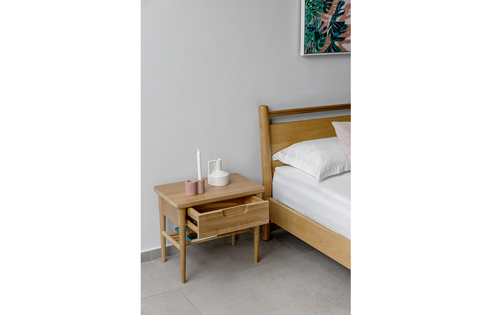 שידת לילה רטרו רחבה הכוללת מגירה מאלון מסיבי בגוון אלון טבעי/ אלון מושחר/ ירוק מרווה - מתאימה גם כזוג עם שידת BROOM ללא מגירה (בעמוד מוצר נפרד)