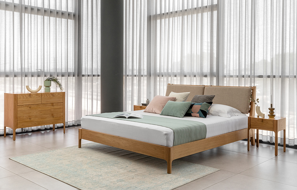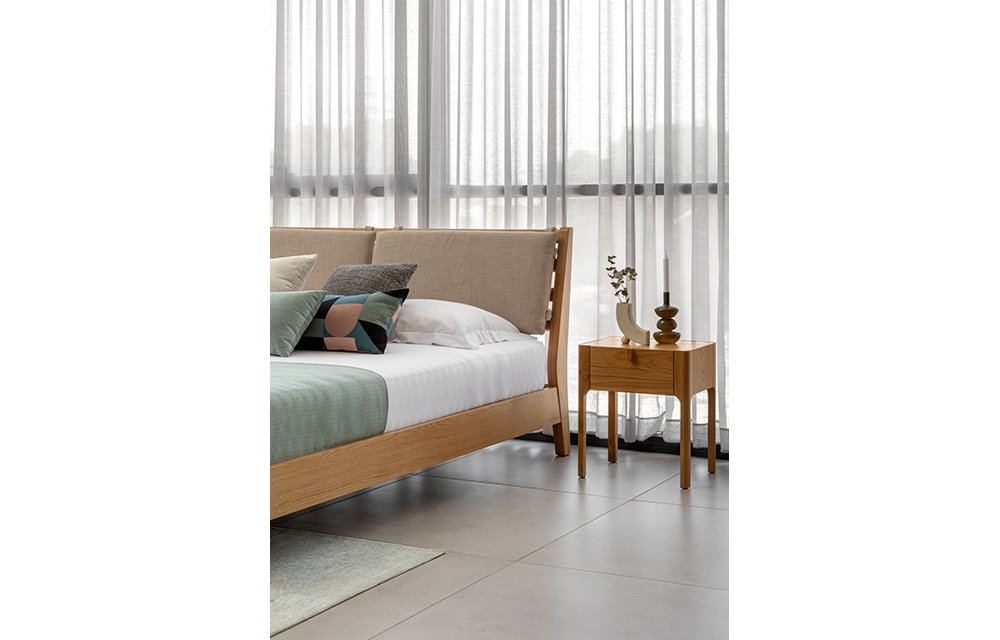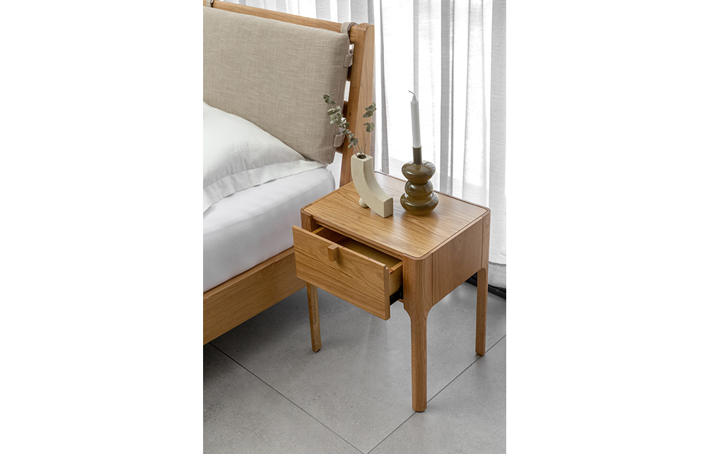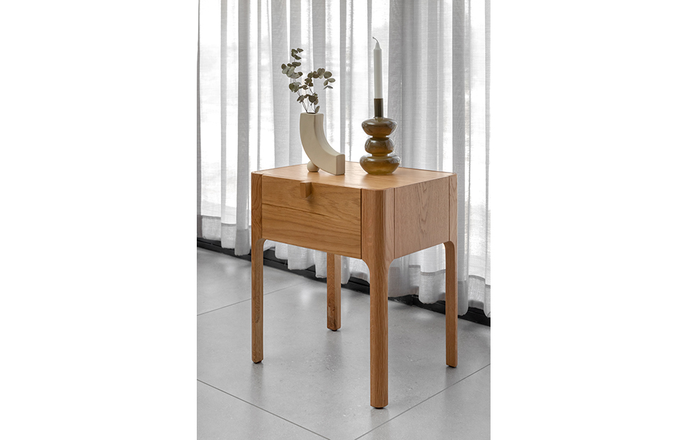 שידת לילה מעץ אלון בקימורים עדינים ומעגולים