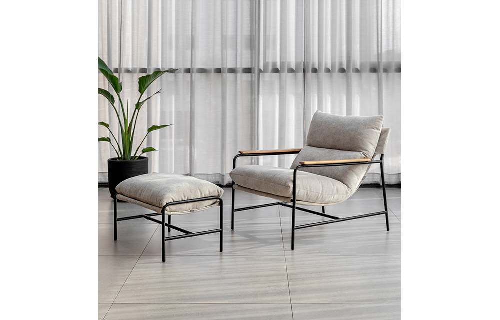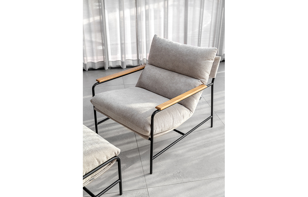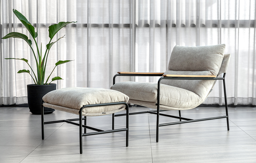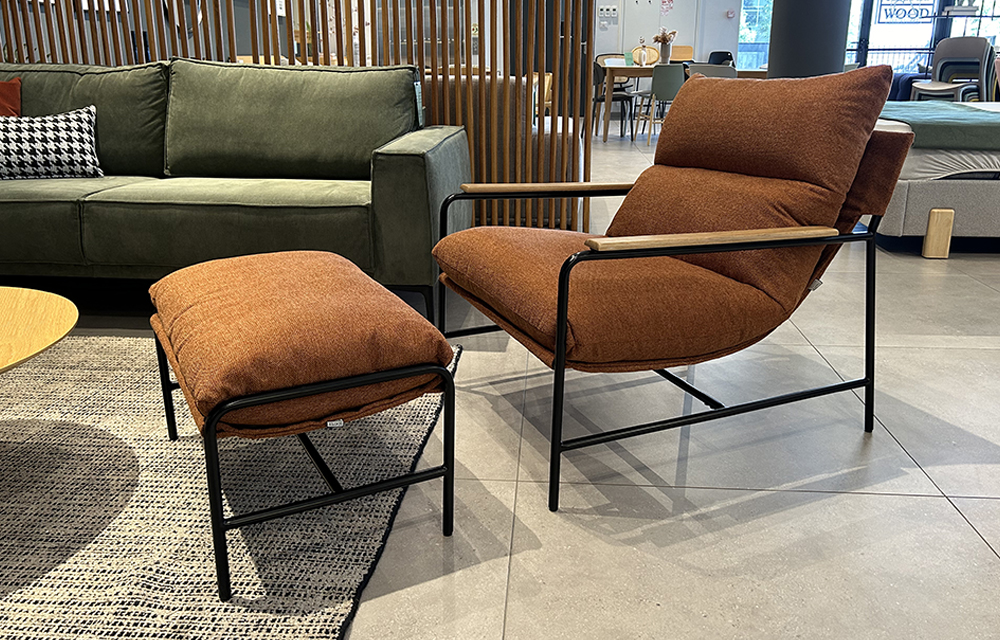 הדום מרופד עם רגלי מתכת שחורות, במבחר בדי ריפוד ממלאי או בבחירה אישית.