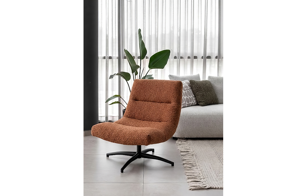 כורסא מרופדת בבד סינטטי בעלת רגל מסתובבת. בגוון חמרה *פריטים אחרונים מעודפי מלאי AS-IS*