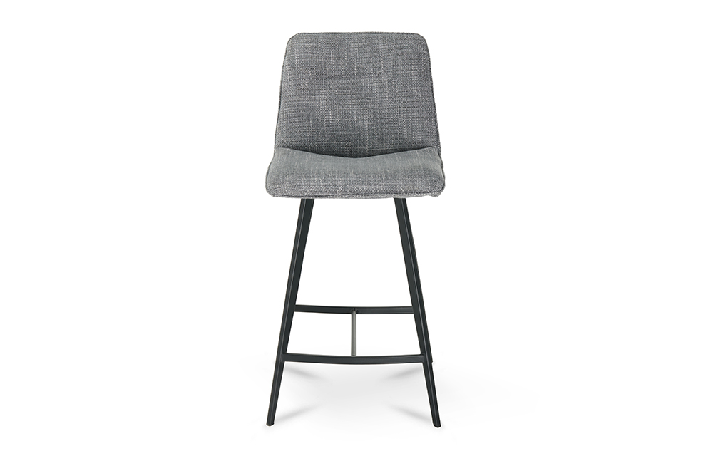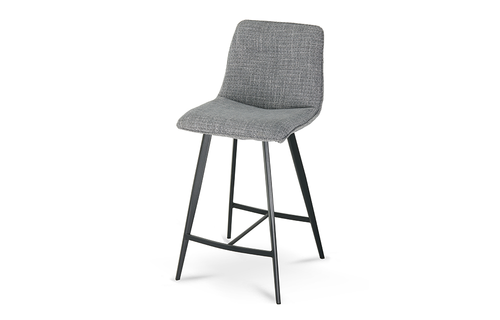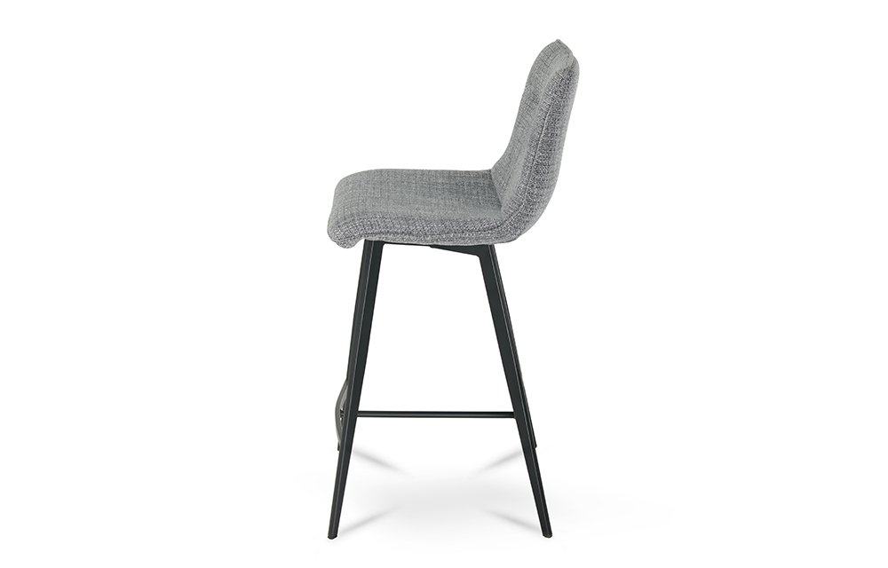 כיסא בר מרופד בבד סינתטי בגוון אפור עם רגלי מתכת שחורה