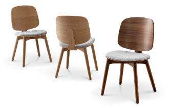 כיסא מינימליסטי בגוון אגוז עם פתח בגב ומושב מרופד