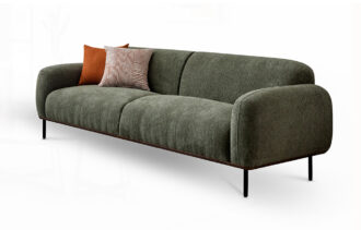 ספה מודרנית ומפנקת עם קימורים מעוגלים בשילוב בסיס מעץ אגוז אמריקאי ורגלי מתכת שחורות. במבחר בדי ריפוד ממלאי או בבחירה אישית.