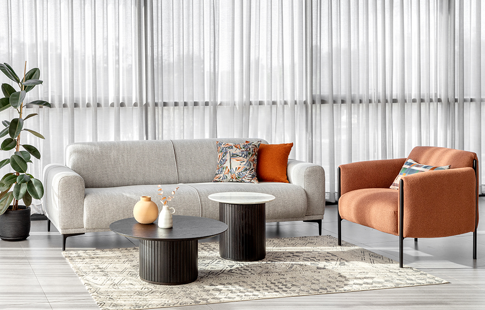 מערכת ישיבה מודרנית קשיחה עם מושב וכריות קשיחים