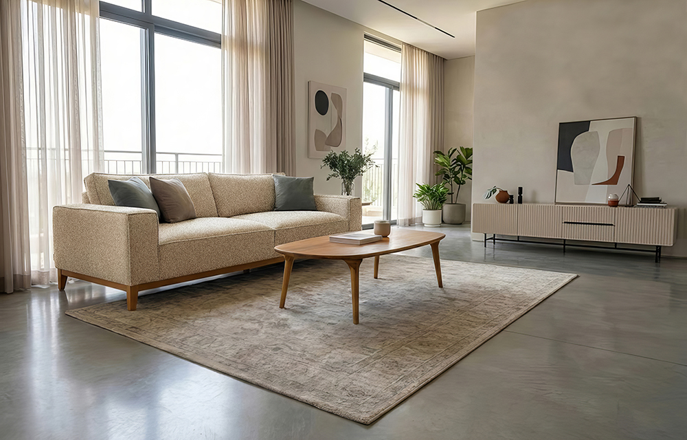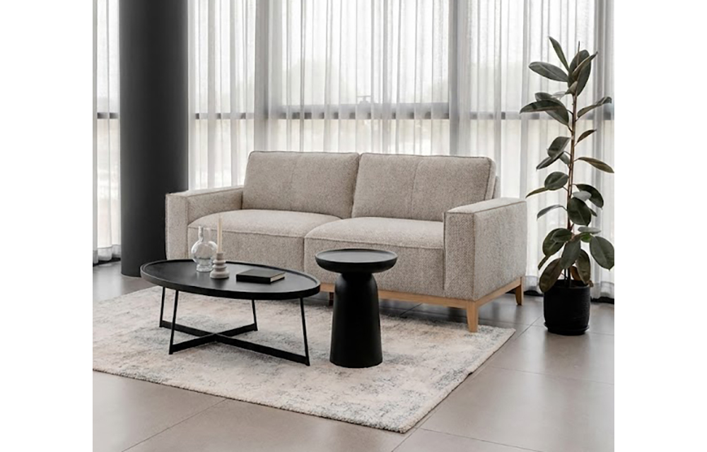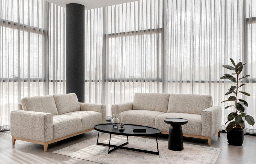 ספה תלת מושב עם מסגרת ורגלי עץ בגוון טבעי