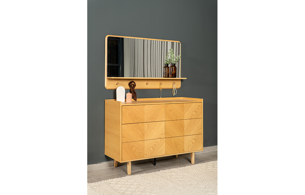 מראה רוחבית עם מסגרת פורניר אלון עם מדף ומתלים