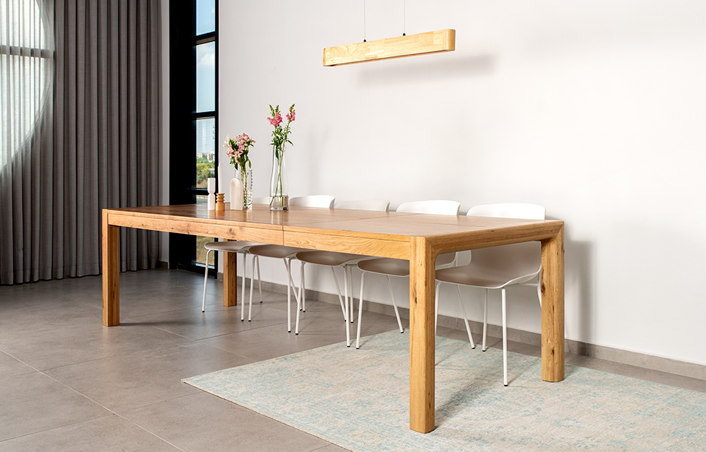 שולחן אוכל מלבני נפתח בגוון טבעי ב 2 מידות לבחירה