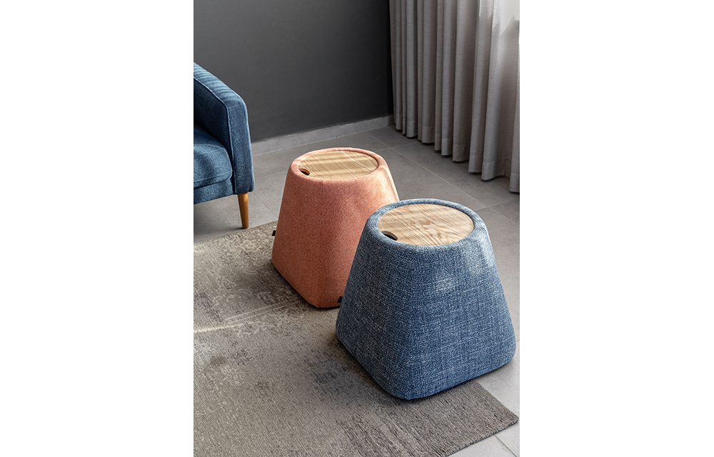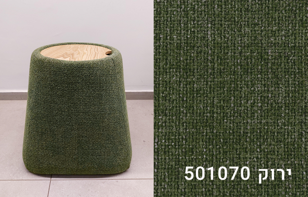 הדום/ שידת צד מרופדת עם מכסה מעץ אלון. לישיבה ואיחסון. זמין במגוון בדים.