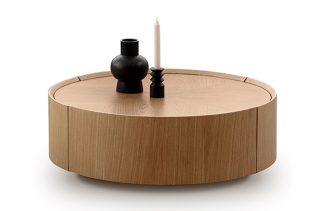 שולחן סלון עגול עם 2 מגירות נפתחות. ב-2 גוונים לבחירה