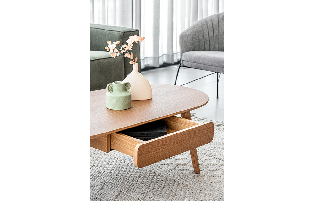 שולחן סלון אובלי עם מגירה. בגוון אלון טבעי/ אלון מושחר/ אגוז.