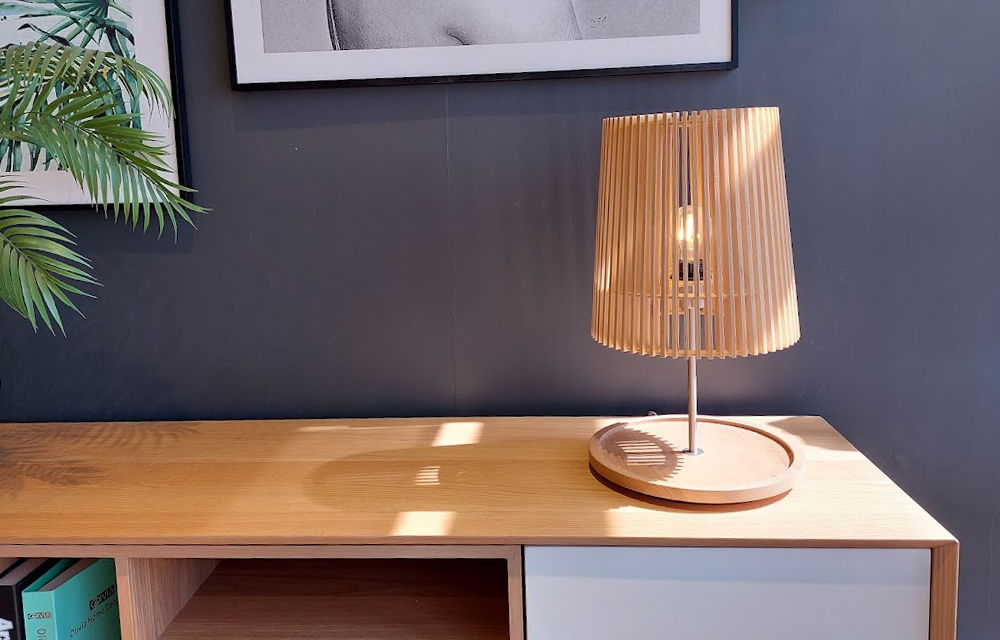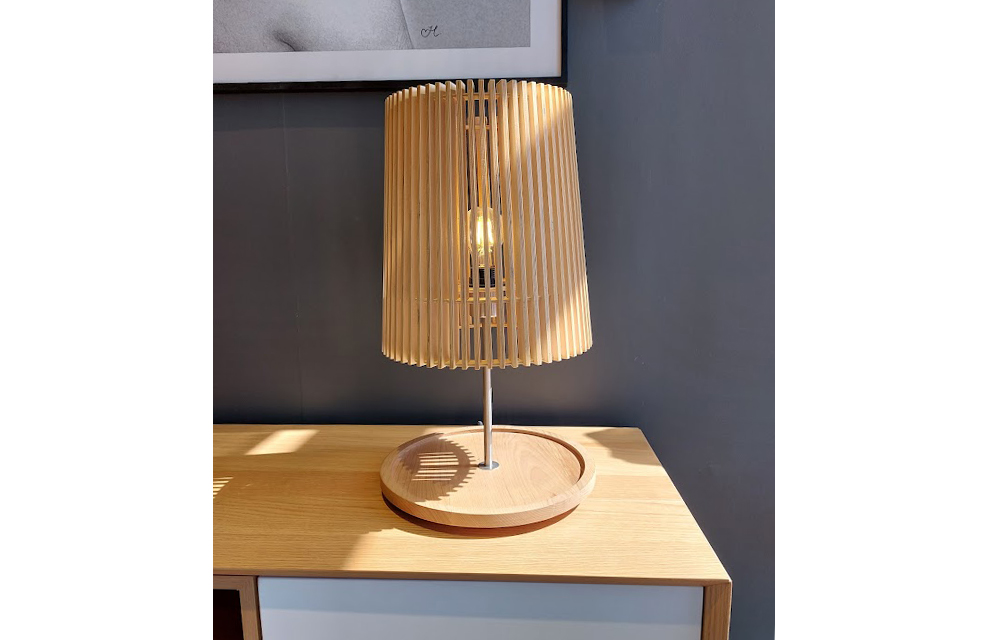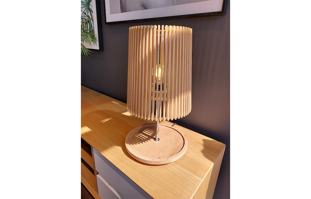 מנורת שולחן בסיס ופסי עץ. *הובלת מוצר זה אינה כוללת הרכבה והתקנה*