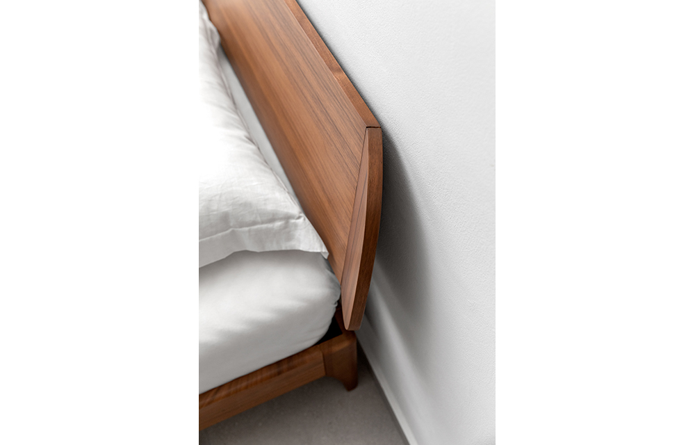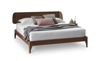 מיטת עץ עם כיפוף דקורטיבי בגוון אגוז