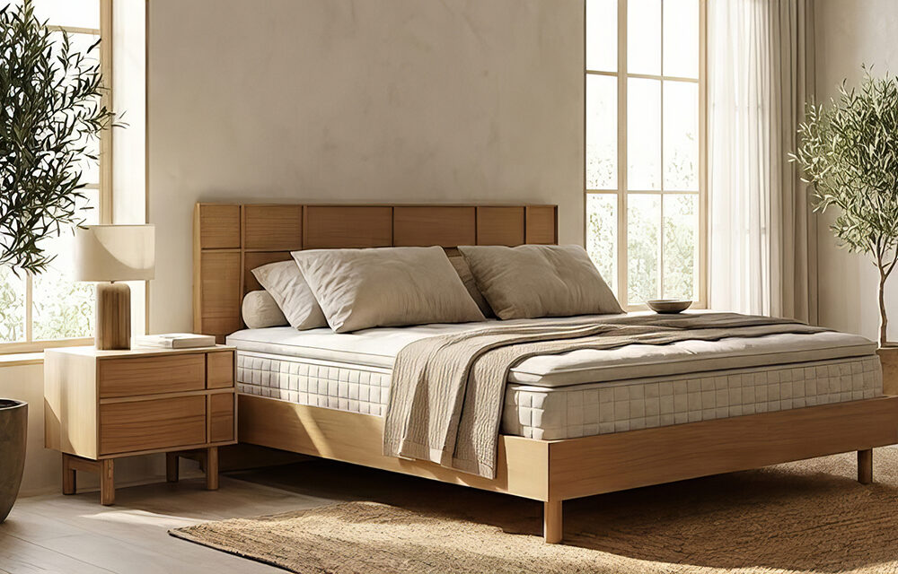 מיטה בעיצוב מינימליסטי בקווים נקיים