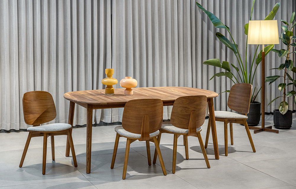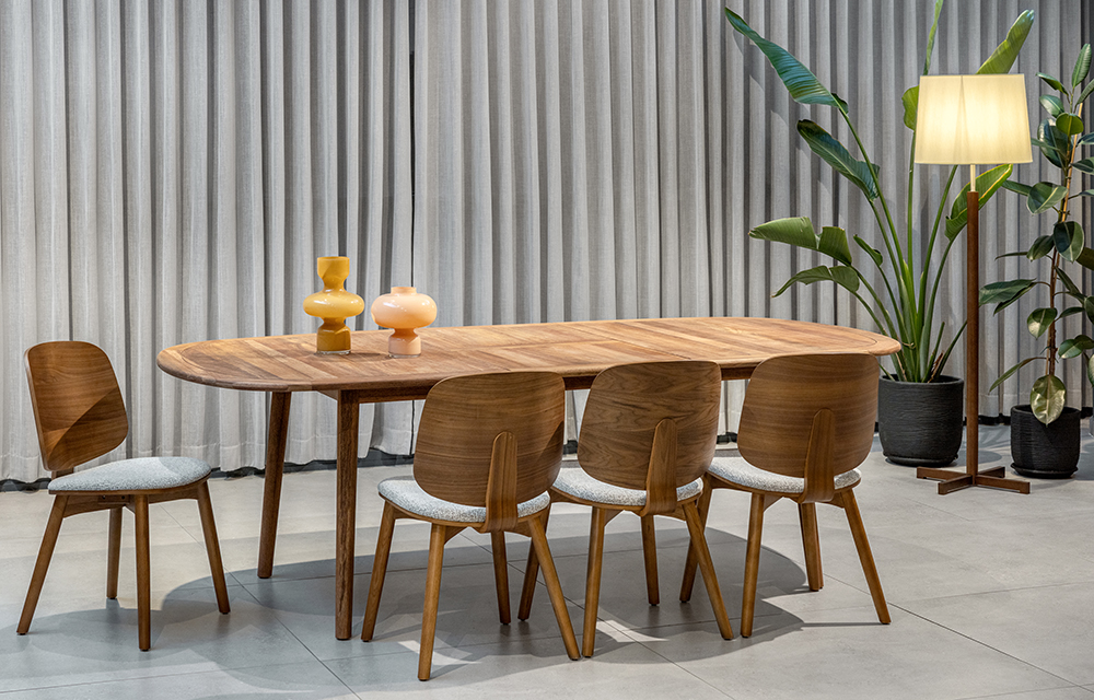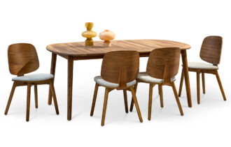 שולחן אוכל אובלי נפתח לפנים ולחוץ הבית. קיים ב-2- גוונים לבחירה: בגוון בהיר מעץ רובייניה או אגוז אדמדם מעץ אנג'ליק. השולחן עמיד לתנאי חוץ ומעובד בגימור טבעי וגולמי המשוח בשמן טיק טבעי לשמירה על המראה לאורך זמן.עכשיו במבצע מעודפים ותצוגות AS-IS
