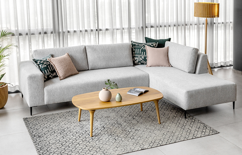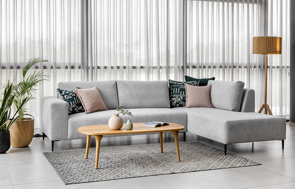 ספה פינתית בדיגום נקי ועל זמני, להזמנה בבחירת בד ומידה אישית. ניתן להזמין גם כספה ארוכה, תלת מושב או דו מושב (לרכישה בסניפים בלבד)