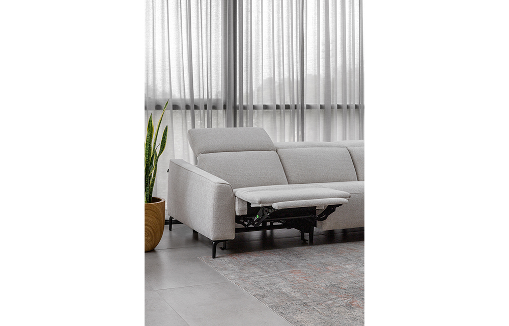ספת שזלונג עם רקליינר קו אפס ( נשכב כאשר הספה צמודת קיר) ו- 2 מנועים המאפשרים מעבר חלק בין מצבי ישיבה, רילקס ושכיבה. משלבת נוחות ארגונומית עם עיצוב נקי ומודרני, להתאמה מושלמת לסלון פונקציונלי ומעוצב. בגוון בז’ ממלאי .או בבחירת בד אישית.