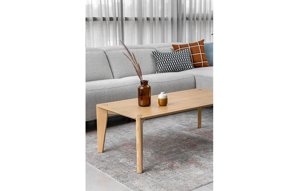 שולחן סלון מלבני בעיצוב נקי ועל־זמני, עם חיבורים אלגנטיים היוצרים דקורטיביות טבעית וייחודית.